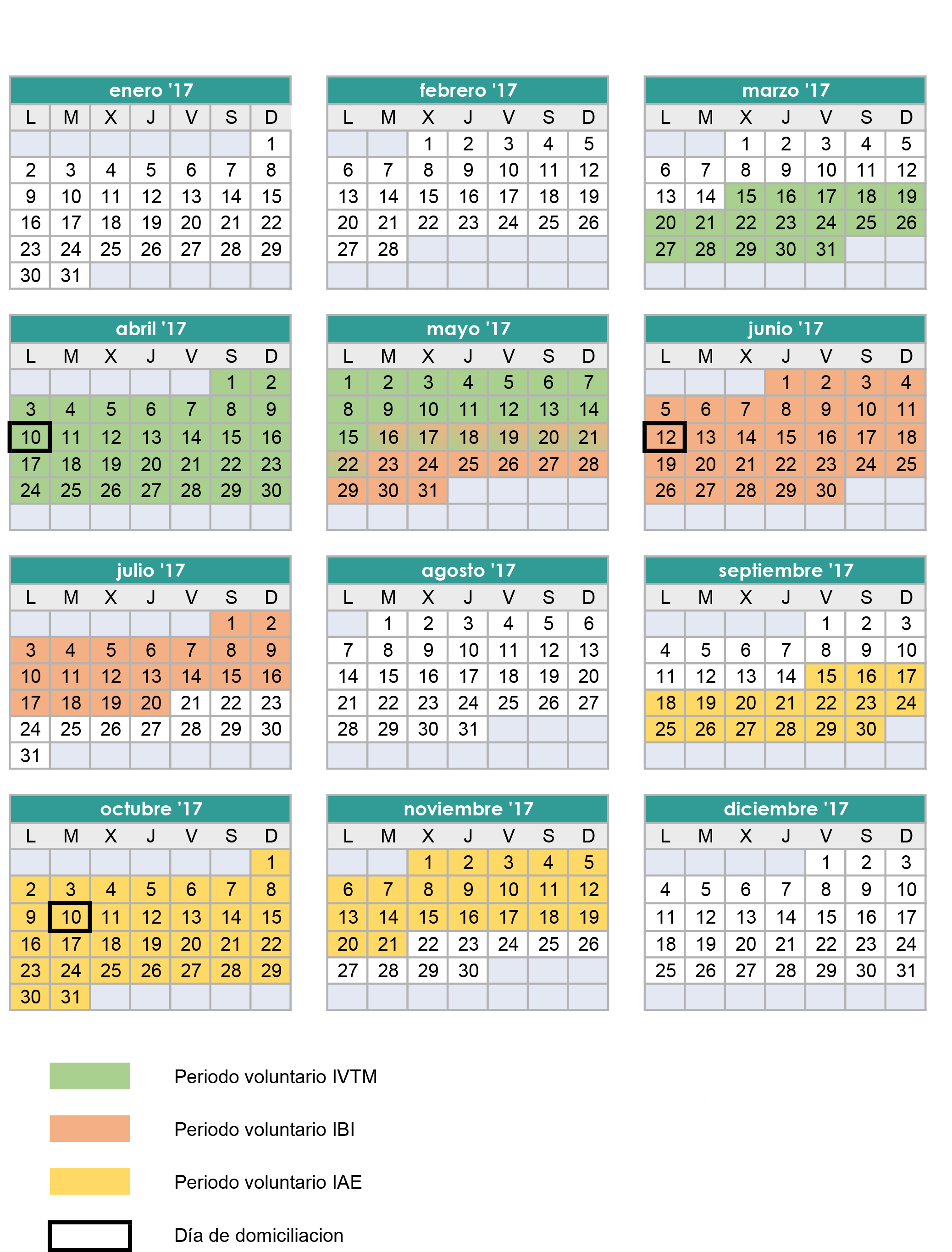 A continuación, se adjunta el Calendario Fiscal del Organismo Autónomo de Recaudación y Gestión Tributaria de la Diputación Provincial de Cáceres para el año 2017.