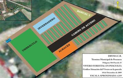- Umbráculo: zona de sombra para las plantas que empiezan a crecer. Tendrá una superficie de 252 m2 y el sistema de riego consistirá en microdifusores.