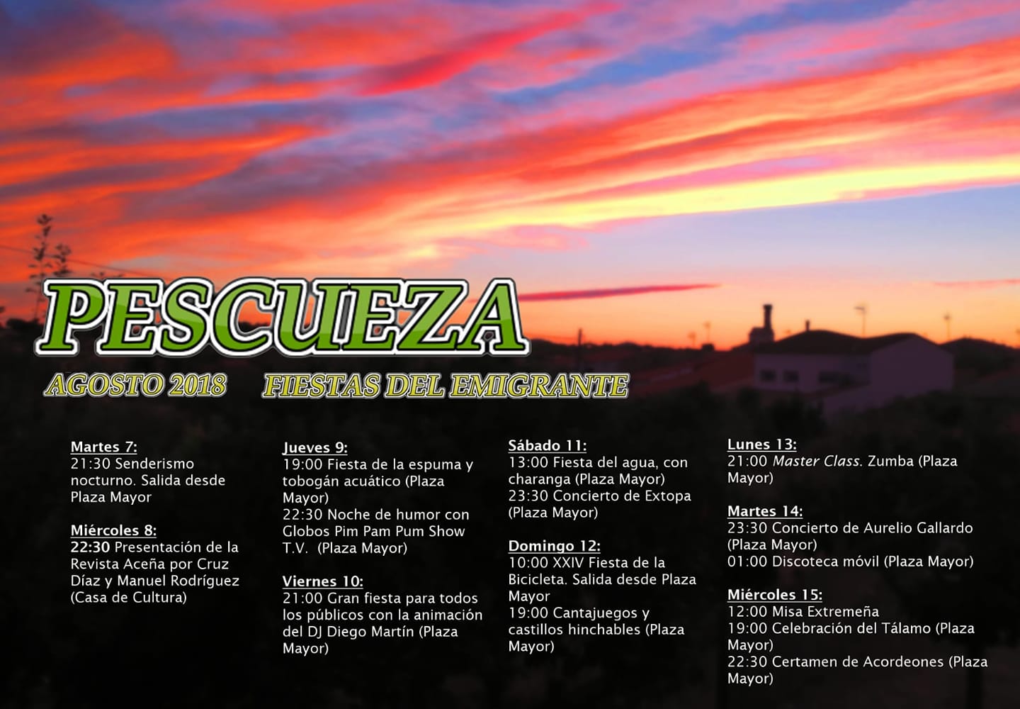 Fiestas del Emigrante 2018 25 julio 2018 2018,Fiesta,Actividad El Ayuntamiento de Pescueza publica el cartel y programa de actividades de las Fiestas del Emigrante 2018. El Ayuntamiento de Pescueza publica el cartel y programa de actividades de las Fiestas del Emigrante 2018.